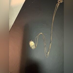 Chic gold necklace with a vibrant blue Hamsa charm. Ideal for everyday elegance.