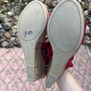 American Eagle Heels Womens Sz 6.5 Cork Wedge Platform Sandals Red Suede Elastic