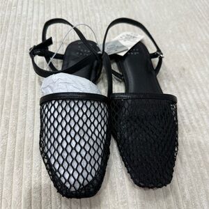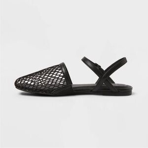 Women's Vanna Fishnet Slingback Flats - A New Day Black 7.5 | Brand New!