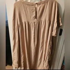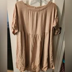 Khaki colored, knee length dress with raw hem, side pockets still sewn, never worn, size 1X, super cute, nice material, not see thru. Smoke/pet free home.