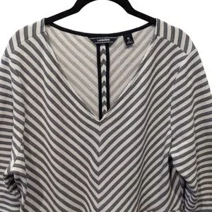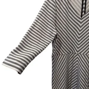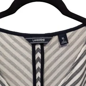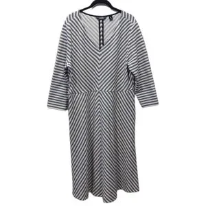 Lands' End Grey & White Diagonal Stripe Chevron Heavyweight Plus Size Dress (18)
