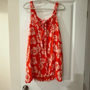 By Anthropologie Gauze Bubble Hem Mini Dress Size M Orange Floral Pockets
