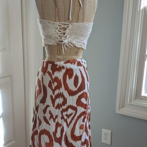 Elevate your style with this chic resort style tribal print midi skirt. Perfect for any occasion, this skirt combines comfort and fashion effortlessly. Excellent condition.