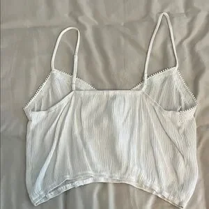 Chic white camisole with lace detailing. Perfect for layering or wearing alone. Soft and stylish design.