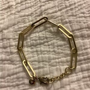 NWT J Crew Larger chunky Paper clip, Gold Tone bracelet, Cubic Zirconia, Brass, Adjustable lobster clasp.