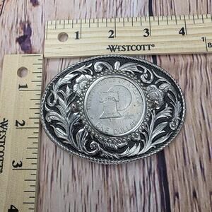 Vintage USA Bicentennial Eisenhower Dollar Belt Buckle Liberty Bell Western Silv