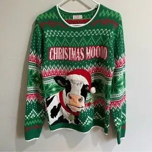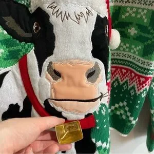 Christmas Moood Cow Sweater Working Bell Women’s Small Crazy Tacky Wacky Fun