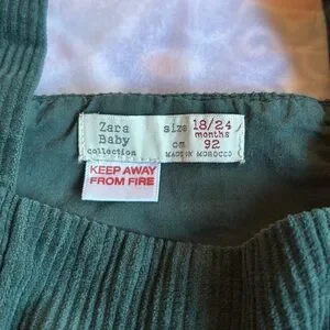 This Zara green corduroy dress for ages 18-24 months features charming bows and a classic pinafore style, ideal for any toddler's wardrobe.