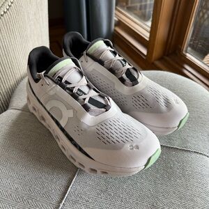 Stylish white and black athletic sneakers with a sleek design. Perfect for running or casual wear.