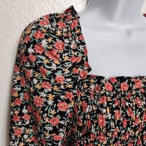 PRETTYGARDEN Women's Long Puff Sleeve Floral Midi Bodycon Dress Square Neck Ruffle Mermaid Smocked Size Large