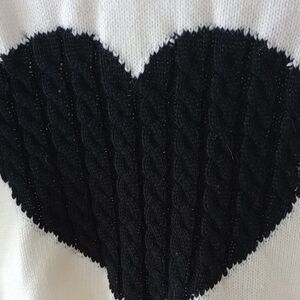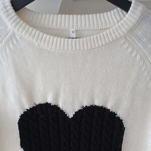Elevate your style with this chic cream sweater featuring a striking black heart design. Perfect for any casual outing. Runs more small than medium.