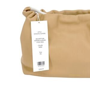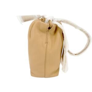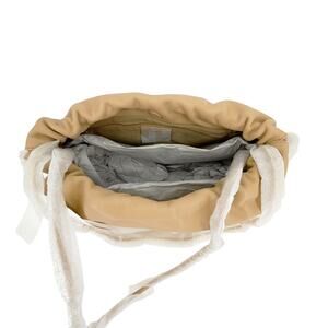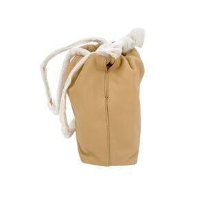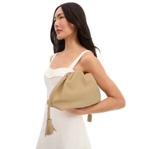 A cool take on the classic drawstring bag. Crafted from smooth, supple beige leather, the Stash pouch bag features a soft silhouette with gathering up top, double tassels, and double straps—including one in gold snake chains. An interior zip pocket and magnetic tab closure keeps your belongings safe and secure.