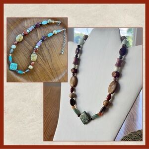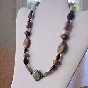 Beautifully designed Jay King multicolored semiprecious gemstone necklace with smooth shaped beads or facets with 925 silver closure.