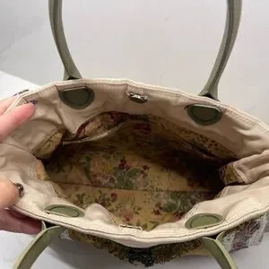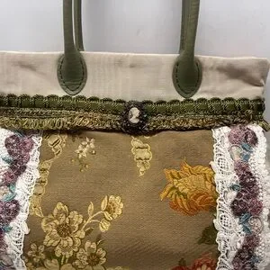 Vintage Find! A handbag also fits shoulder, no brand name other than "amazing" on the inside which seems to be a homemade/small business purse is my guess! Very vintagey and gorgeous would love to keep but I haven't used it at all!