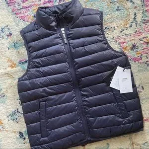 UGG Felton Puffer Vest in Navy. Add an extra layer of insulation to your cold-weather ensemble. Made from slick nylon, this puffer vest is filled with cozy synthetic down, and lab-tested to repel both rain and snow.