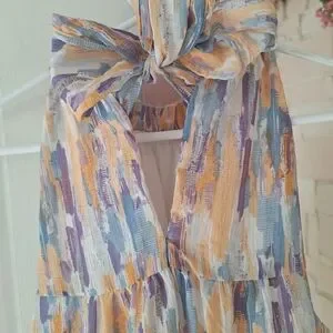 🌸 Entro sleeveless dress in soft spring colors, featuring a charming bow on the back/neck for a playful, feminine touch. Perfect for brunch, spring events, or casual outings.