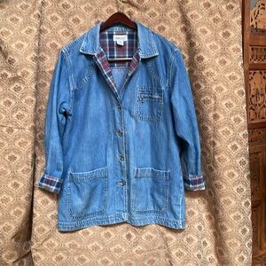 ❤️Vintage 100% cotton CABIN CREEK Blue Denim Jacket Plaid Accents Farm style