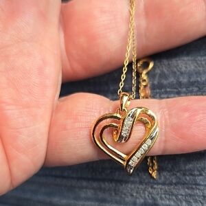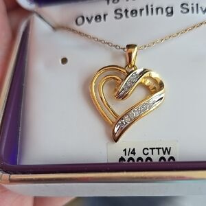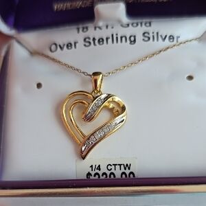 18 KT Gold Over Sterling Silver 1/4CTTW Diamond Heart Necklace Original$239