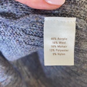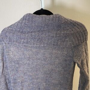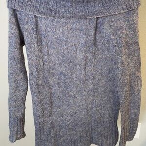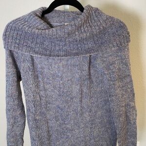 Caslon Women's Knit Long Sleeve Sweater in light and dark blue with speckles of other colors knitted in. Wide-spread turtleneck that shows off the neck line.