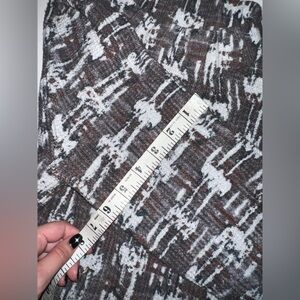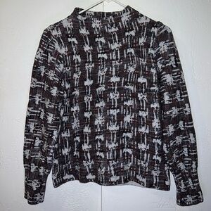 -Brown and Gray houndstooth print long sleeve funnel neck sweater.