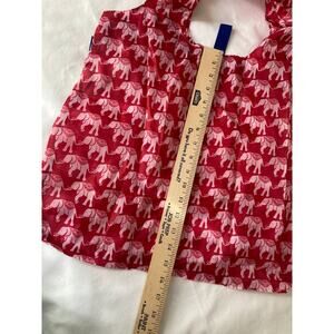 The vibrant red nylon material features a fun elephant print.