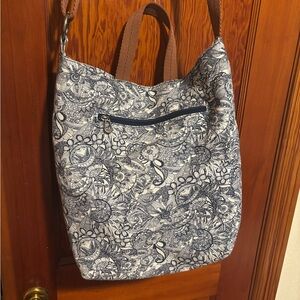SAKROOTS bohemian blue denim patchwork paisley the City crossbody bag. In EXCELLENT condition, the inside and the strap are very clean. Cute denim detail patchwork on the front and blue paisley on the back. Long adjustable strap and plenty of pockets inside. Ready for a new home!
