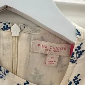 Pink Chicken Cream and Blue Floral Dress - Size 6