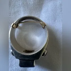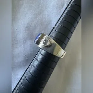 silver ring featuring a striking blue stone. Perfect for adding a touch of color to any outfit.
