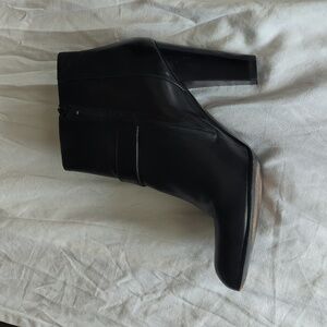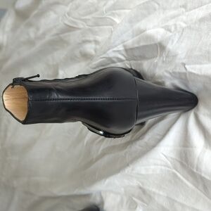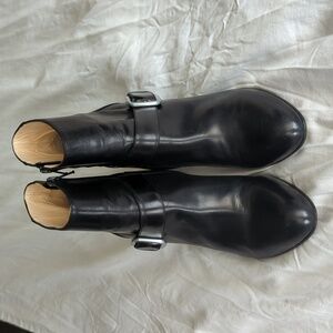 Chic black leather ankle boots featuring a stylish buckle. Ideal for versatile wear. Beautiful boots that are worn but in great condition and have lots of life left in them.