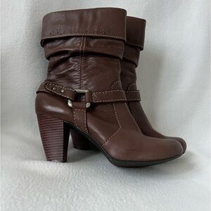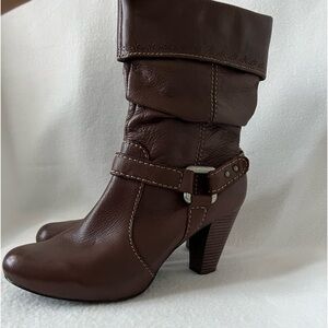 Fossil Size 10 Brown Leather Boots. Preowned item with wear inside boot ( crackling). Please look at pictures carefully.