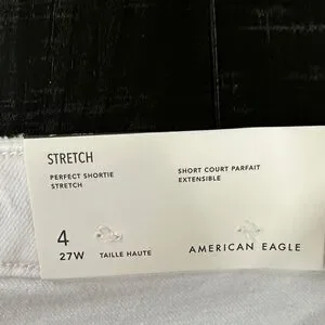 American Eagle perfect shortie stretch white jean shorts. New with tags. Size 4