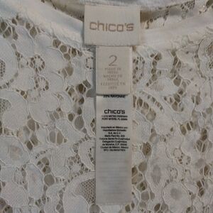 Chicos Tank Top Womens 1 Medium M White Sleeveless Shirt Stretch Blouse Lace