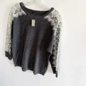 NWT J. Crew Grey Wool Lace Sleeve Sweater. Size Small.