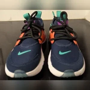 Stylish and comfortable, these Nike kids' sneakers feature a vibrant navy and orange design. Perfect for active play and everyday wear.