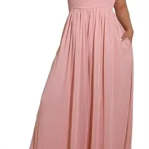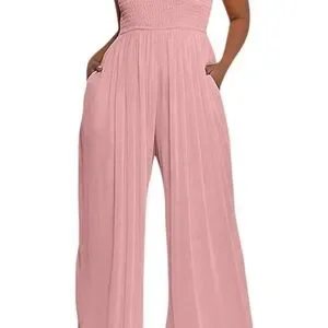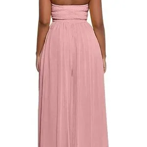 This strapless wide-leg jumpsuit is the moment. Designed with a stretchy ruched bodice and ultra-flowy pleated legs, it cinches the waist and skims the hips for a silhouette that snatches without trying. Whether you’re brunching, beaching, or bridesmaiding — this look delivers soft luxury with zero effort.
