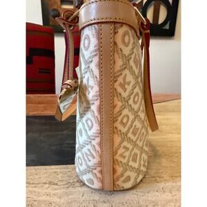 NWT! Vtg Dooney & Bourke Cream Crossword Leather & Canvas Bucket Bag Orig $175*