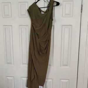New with tags! ASOS olive green one-shoulder dress. Perfect for any occasion, this dress offers a chic and sophisticated look. Linen blend. Fits tts!
