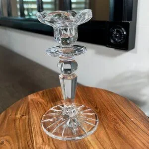 Add a little sparkle to your table or mantel with this classic pair of clear crystal taper candle holders. Their faceted bodies catch the light beautifully and create a timeless, formal look for dinners, weddings, or everyday elegance. They’re in excellent pre-owned condition overall — please note there is a very small chip on the bottom edge of one candlestick that isn’t visible in photos but can be felt at the base. Structurally sound and still gorgeous when displayed together. ✨