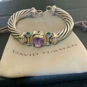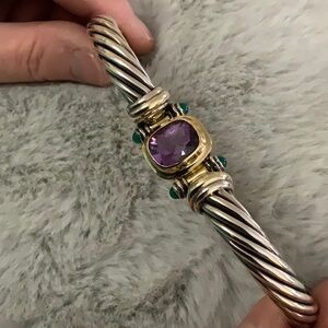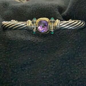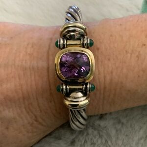 David Yurman Elegant Silver and Gold Bracelet with Purple Gemstone. 14k jade