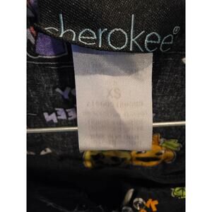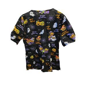 Cherokee Medical Scrub Top XS Womens Black Halloween Pumpkin Print Top