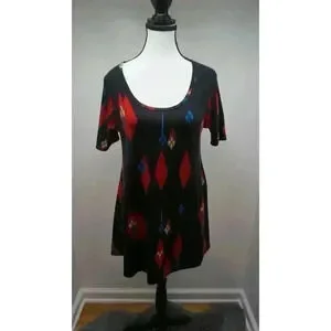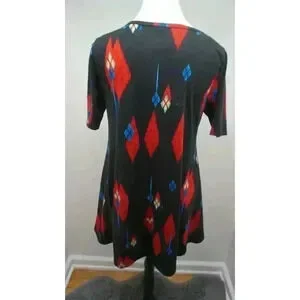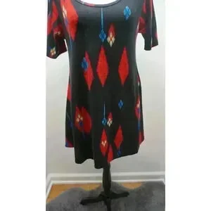 LuLaRoe Carly Dress - Black with Red and Blue Print - Size XS