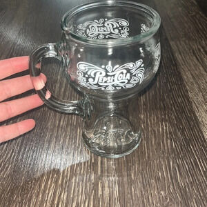 Vintage Pepsi cola glass with handle. Has Pepsi cola on both sides of the cup.