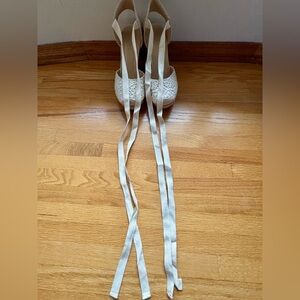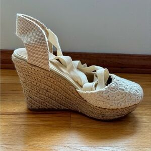 2/$20 - Wild Diva Lounge Lace Espadrille Wedge Sandals, Size 7 | Ivory/Cream