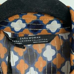 NWT Zara Woman Premium Denim Collection Geometric Print Metallic Blouse