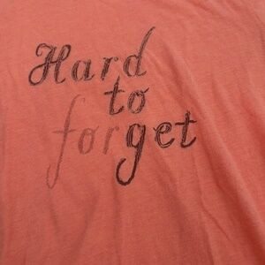 Bright orange short-sleeve T-shirt featuring bold lettering that reads “Hard to Forget”. Soft cotton blend with a classic crew neckline and easy relaxed fit. Perfect for casual everyday wear or layering.