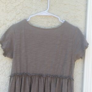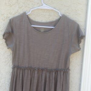 Natural Life Midi Raw Hem Ruffle Detail Taupe Cotton Short Sleeve Boho Prairie Dress