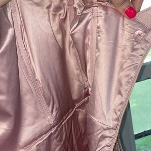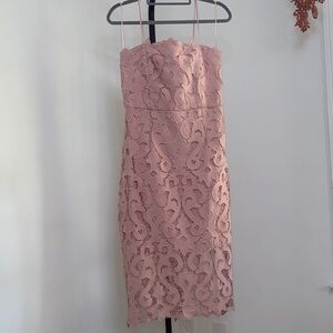 Chic strapless dress with intricate lace design. Perfect for elegant occasions.