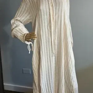 Zara Cream and Pink Striped Linen Blend Tunic Dress ZW Collection Size XL.