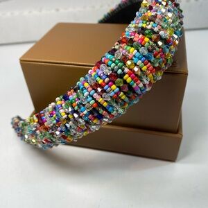 Vibrant beaded headband with a multicolor design. Perfect for adding a pop of color to any outfit.