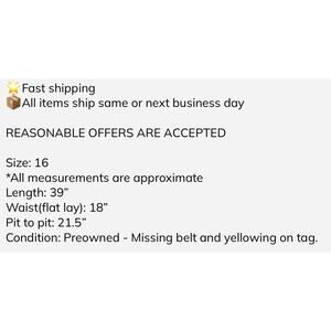 Condition: Preowned - Missing belt and yellowing on tag.